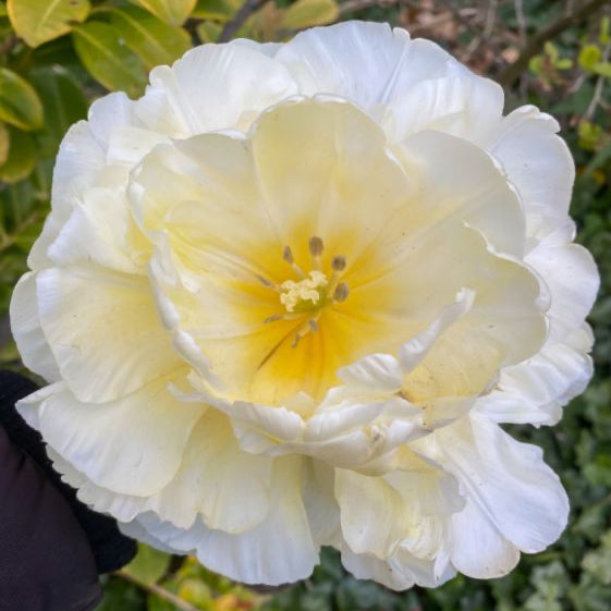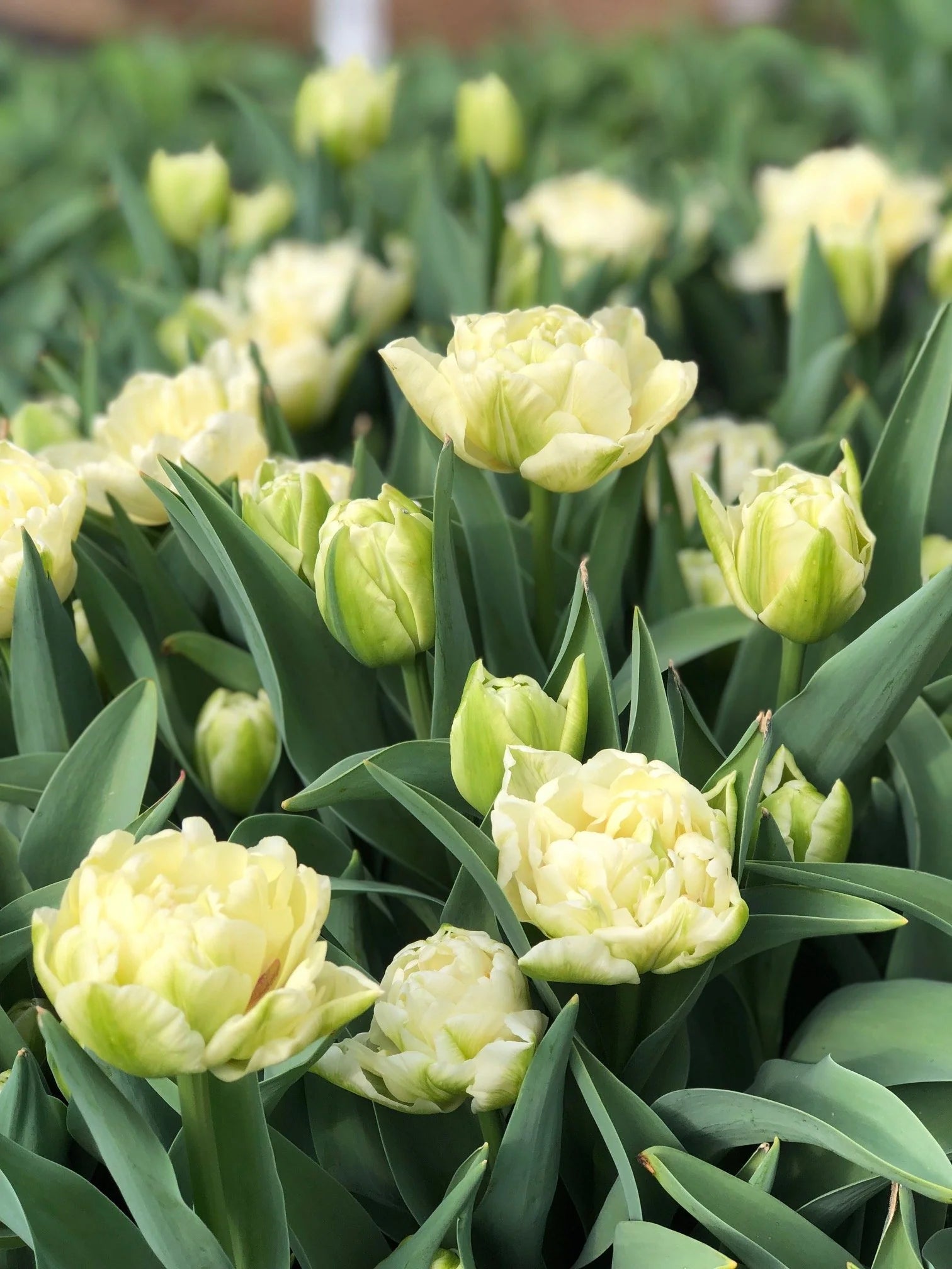 Longues et fortes tiges menues d'une grande fleur double aux pétales crèmes qui tirent sur le jaune beurre. Des couleurs fraîches et douces, parfaites pour es mariage printaniers.